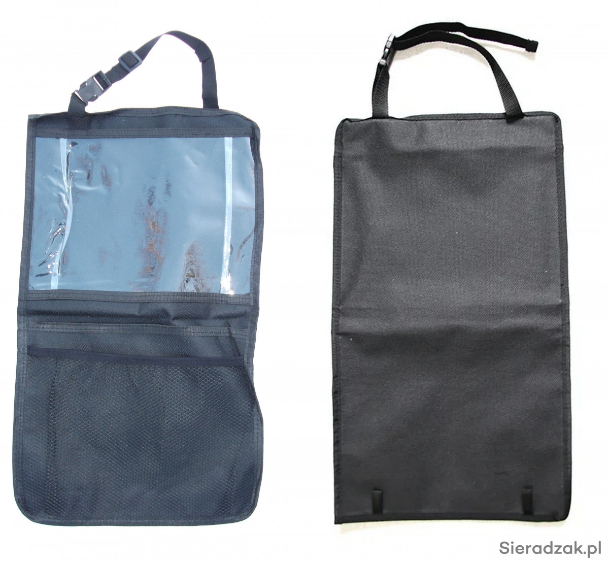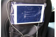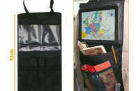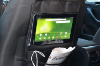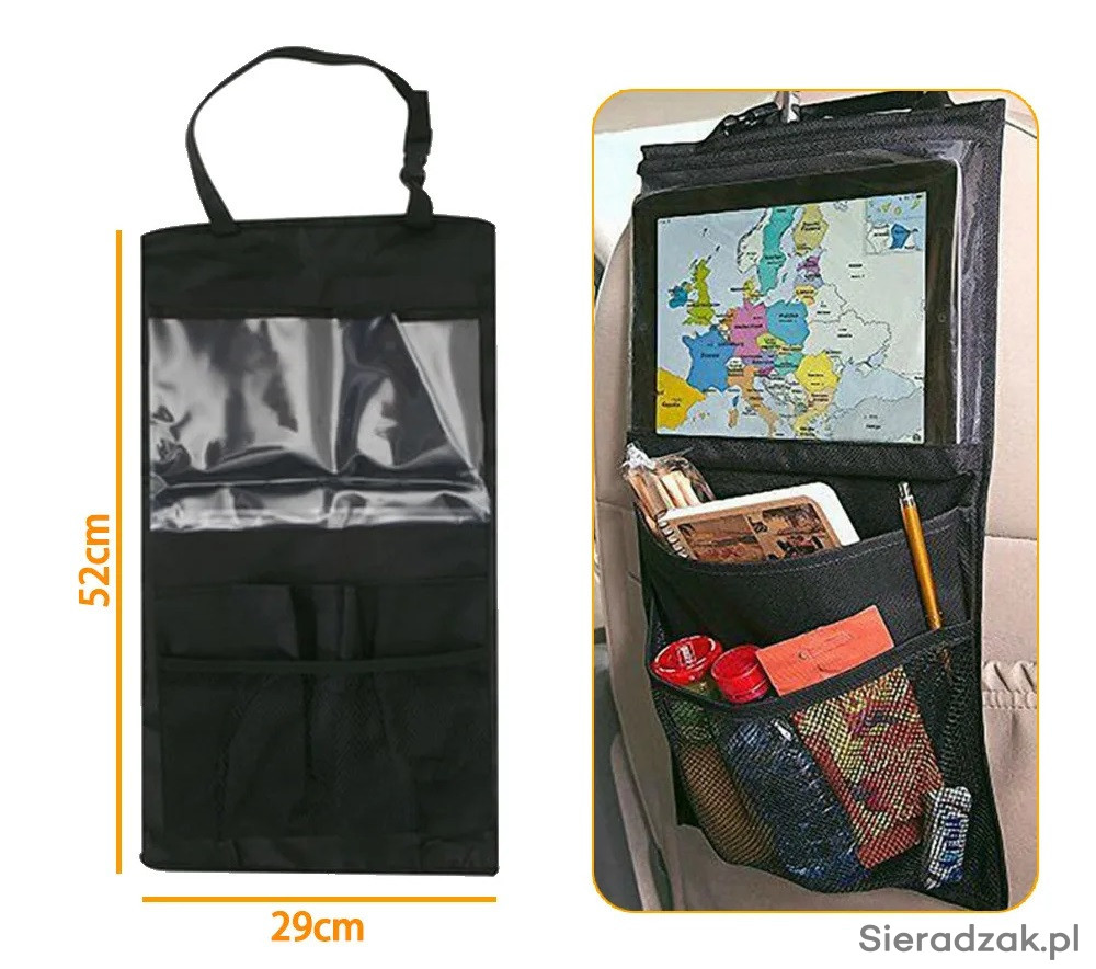 Oferuję prosty bez wodotrysków organizer na plecy fotela samochodu. Posiada 3 kieszenie. Najważniejsza z nich to przezroczysta kieszeń będąca ekranem dotykowym może zmieścić tablet do 10,5 cala.