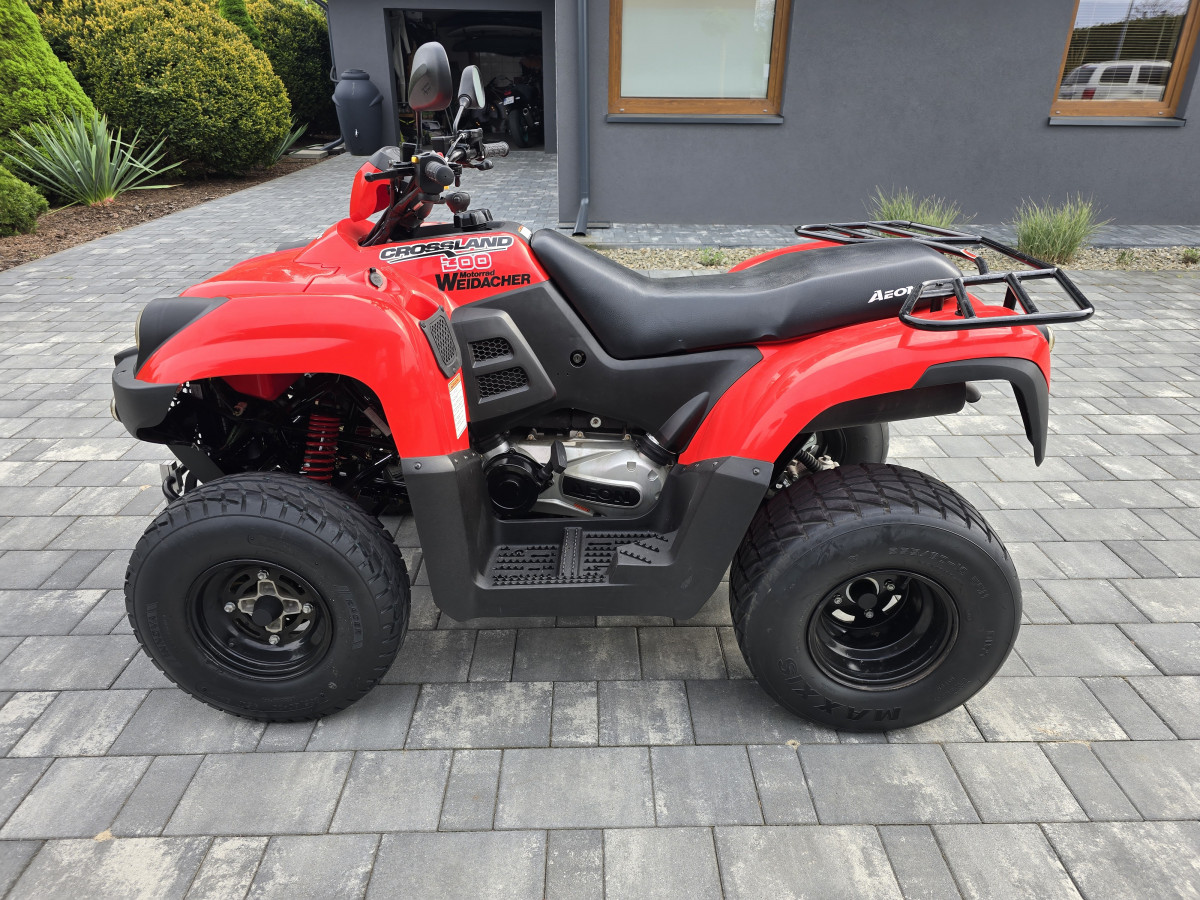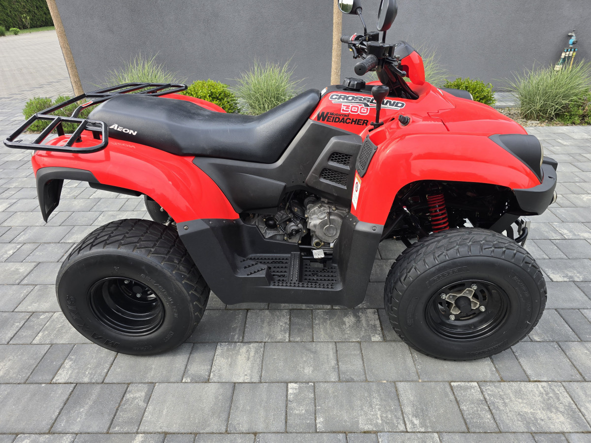 Do sprzedania bardzo zadbany Aeon Crossland 300 z 2007r. Sprowadzony z Niemiec bezpośrednio od właściciela. Homologacja L7e (14kW w dowodzie). Wizualnie prezentuje się bardzo ładnie co widać na załączonych zdjęciach i prezentacji wideo. Quad ma założony większy silnik od Aeona Cobra 400. Silnik jest świeżo po remoncie. Założony został nowy tłok (oryginalny), pierścienie, uszczelki, nowe zawory i uszczelniacze.Na wszystko posiadam paragony i oczywiście stare części. Wymieniony został również olej w silniku, olej w skrzyni, wyregulowane luzy zaworowe, założony nowy żelowy akumulator. Opony w bardzo dobrym stanie. Napęd na wale kardana. Skrzynia automat. Oryginalny przebieg 13864km udokumentowany do samego końca. Quad ma założone również nowe amortyzatory przód i tył oraz nowe drążki kierownicze. Zawieszenie bez żadnych luzów. Do quada jest pełna dokumentacja (mały i duży Brief, książka serwisowa, wydruki z przeglądów TUV, instrukcje, faktury za naprawy itp). Sprzęt był na bieżąco serwisowany. Wszystko udokumentowane fakturami. Quad jest produkcji tajwańskiej. Zapraszam na oględziny i jazdę próbną. Możliwość dowozu do klienta. Na więcej pytań chętnie odpowiem pod numerem telefonu 667-702-600.
