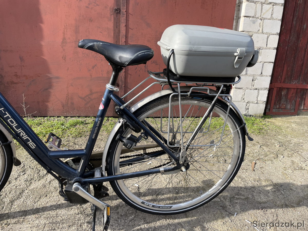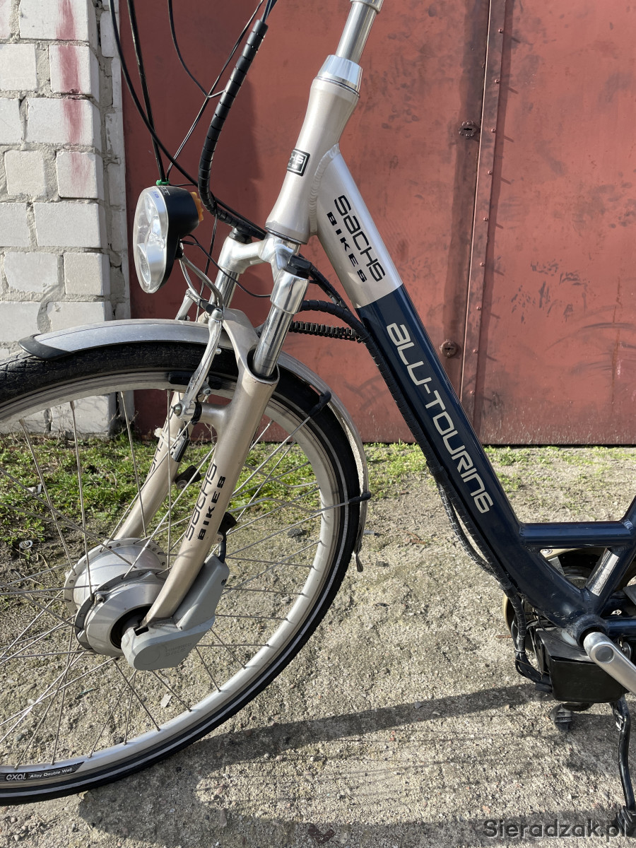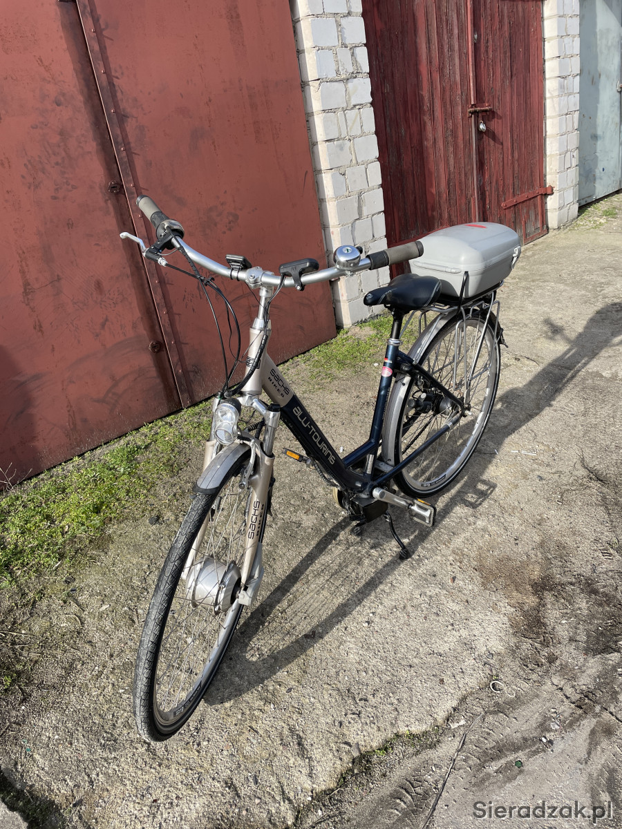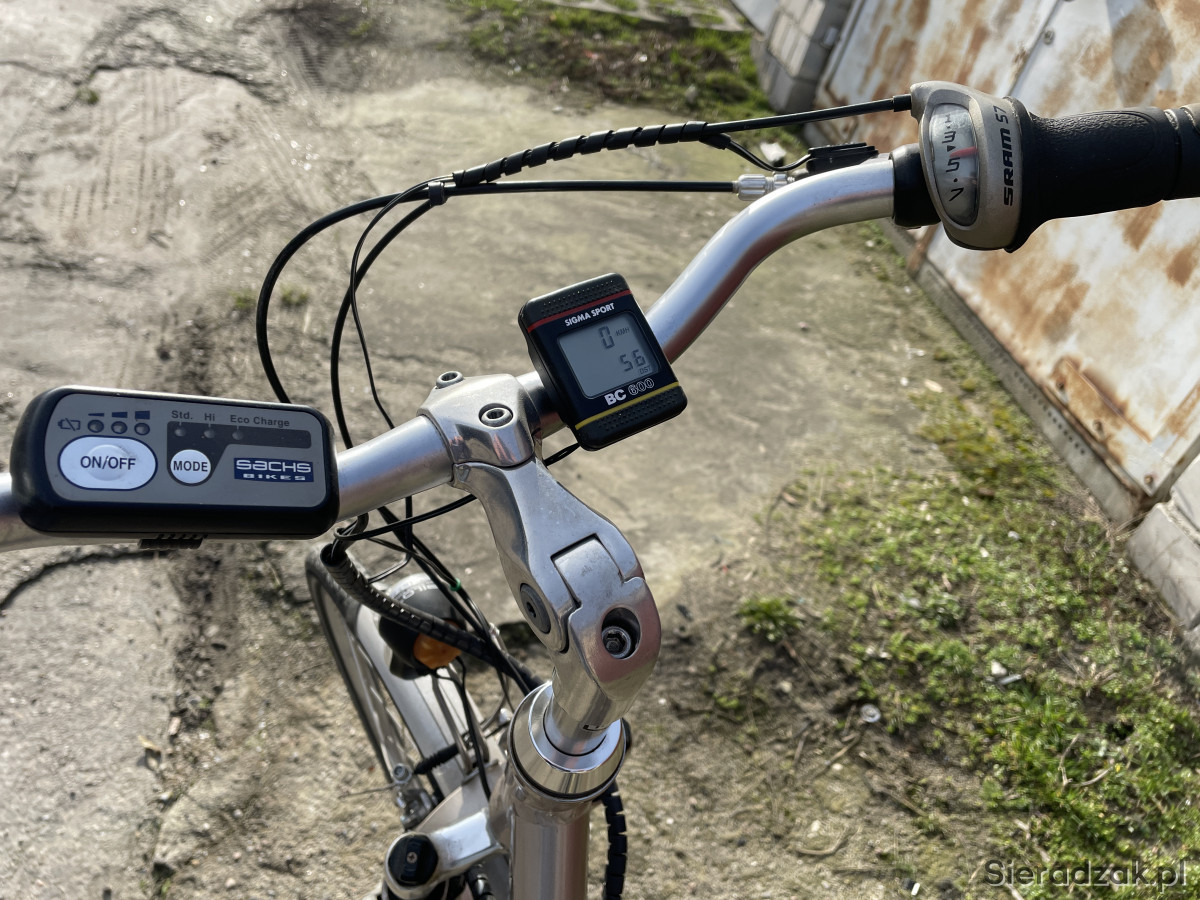 Witam do sprzedania rower elektryczny Niemieckiej firmy Sachs. Rower na kołach 28 7 przerzutek silnik w przednim kole bateria org umieszczona w kuferku na bagażniku. Trzy tryby wspomagania. Orginalna bateria i fadowarka blokada tylnego koła owietlenie przód i tył z dynama liczki prędkości. Bateria wymaga wymiany. Pozwala na przejechanie tylko kilku km. Stan roweru dobry