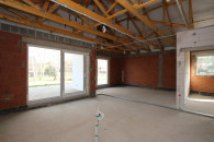 - przestronne okna w pomieszczeniu salonowym połączonym z kuchnią,