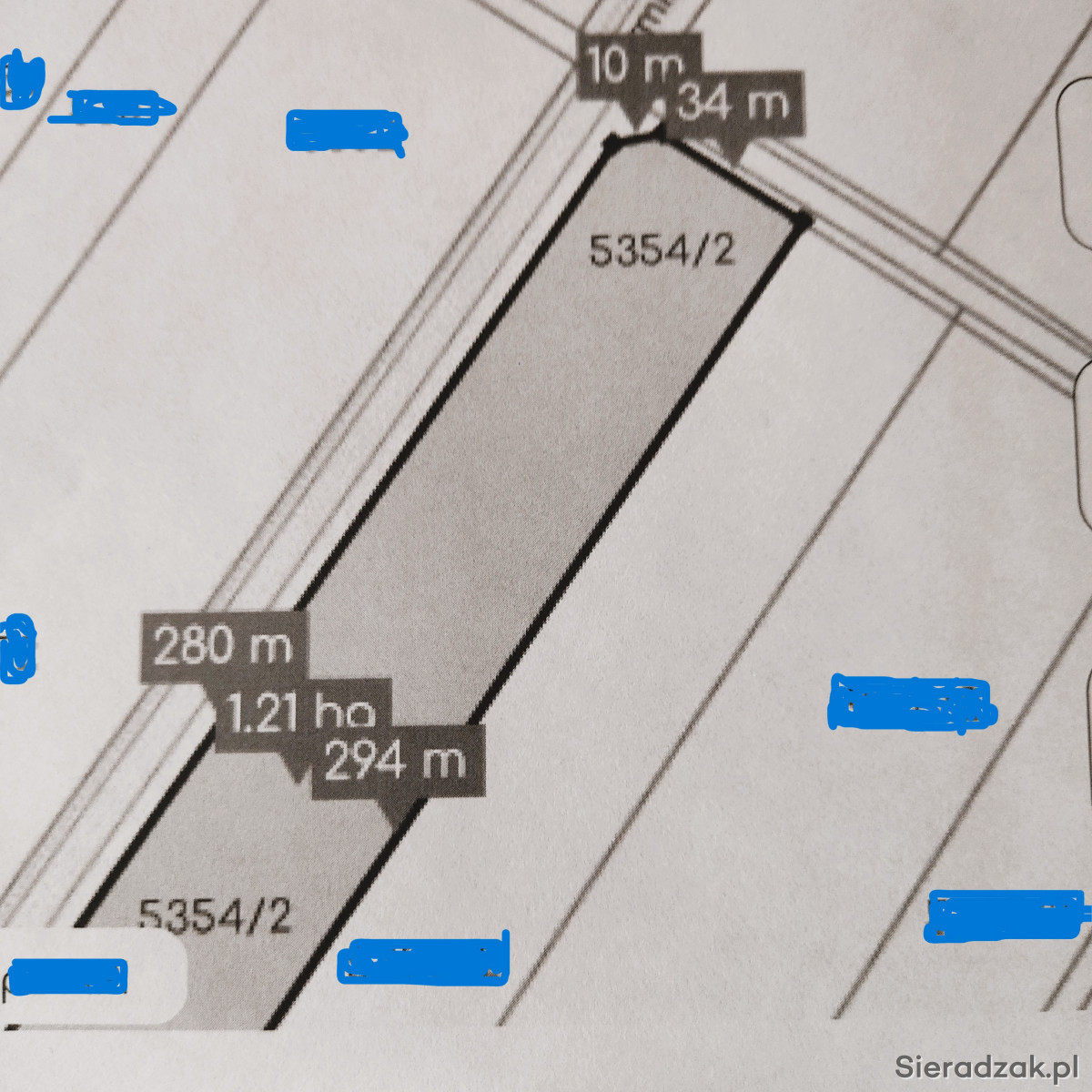 Wymiary działki to w przybliżeniu 294m x 41m (dokładne wymiary przedstawia 2 zdjęcie).