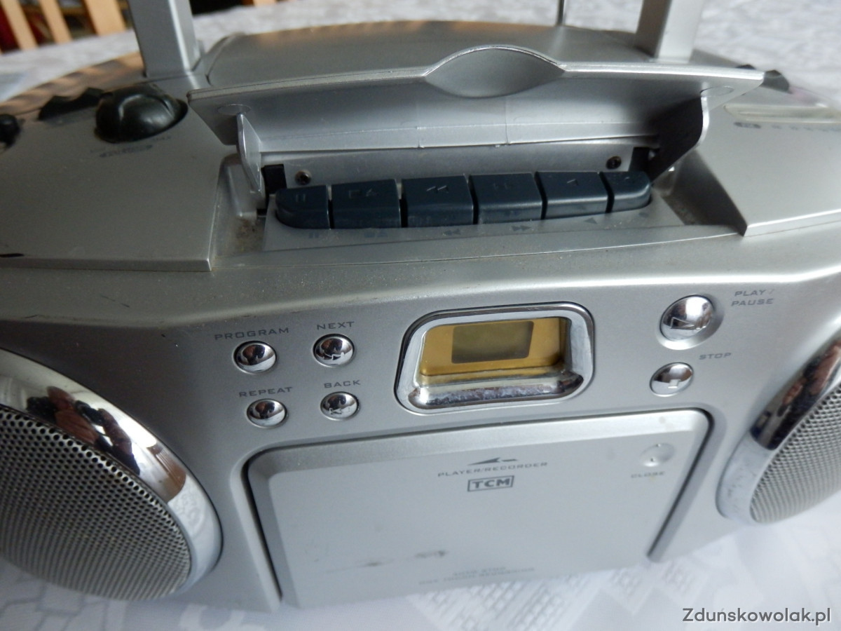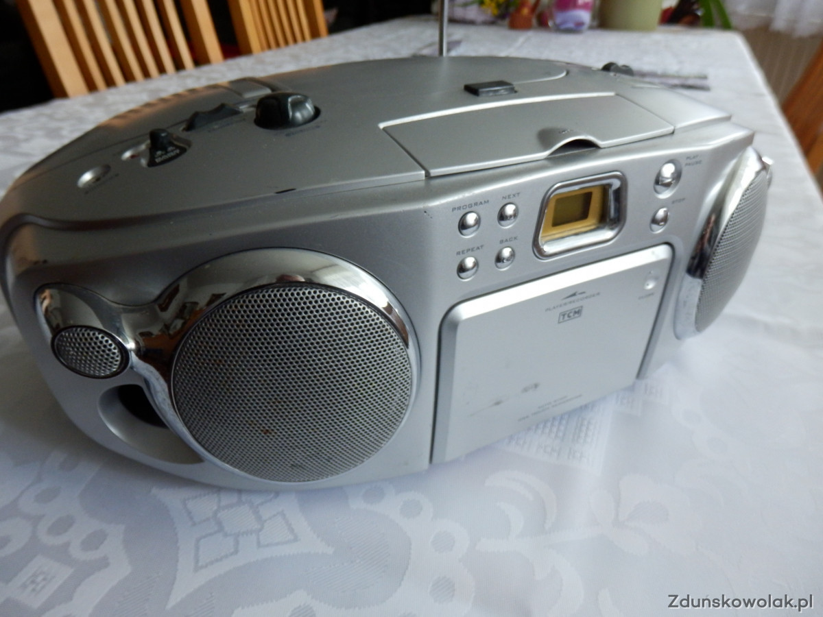 Odbiornik radiowy z magnetofonem kasetowym i CD marki TCM. Sprzęt używany ale sprawny. Radio działa w pełnym zakresie FM- do 108. odtwarza nagrania na kasetach i płytach CD /orginalnych nagrań/. Zasilanie 230W lub bateryjne. Posiada ślady użytkowania w postaci przytarć i rysek oraz ma brak końcówki anteny teleskopowej. Jakość dzwięku bardzo dobra. Dysponuje gniazdem na słuchawki oraz możliwością podbicia basów. Zapraszam do osobistego sprawdzenia jakości odbioru i poznania stanu tego odbiornika. Nie wysyłam za tzw. pobraniem lecz po wpłacie na mój rachunek bankowy przy uwzględnieniu koszku przesyłki. Polecam szczególnie posiadaczom kaset magnetofonowych i płyt CD.