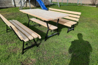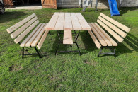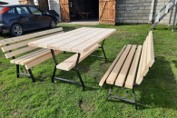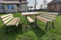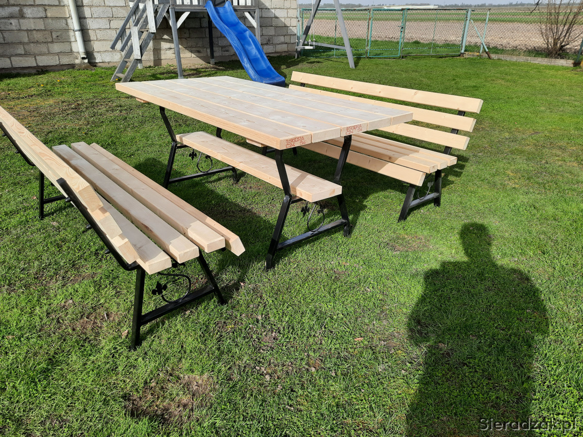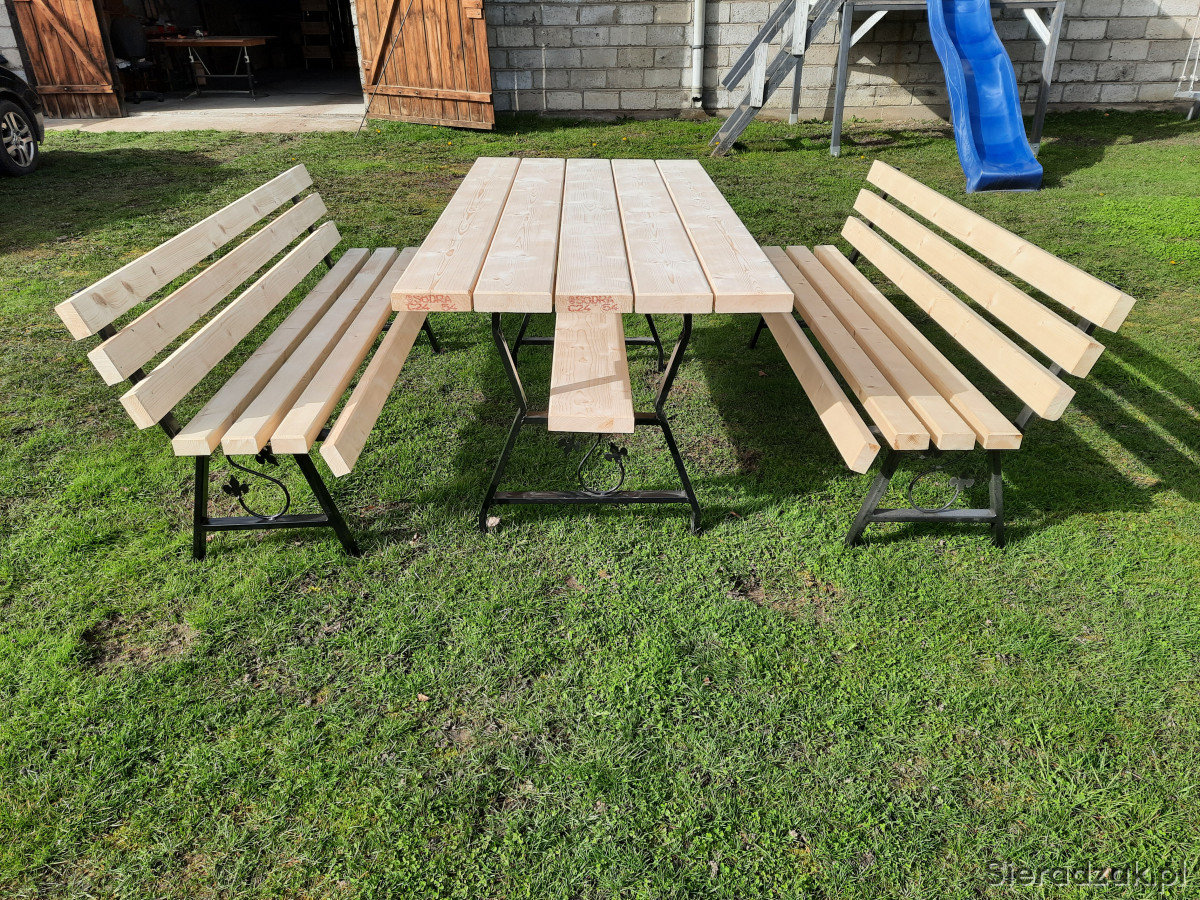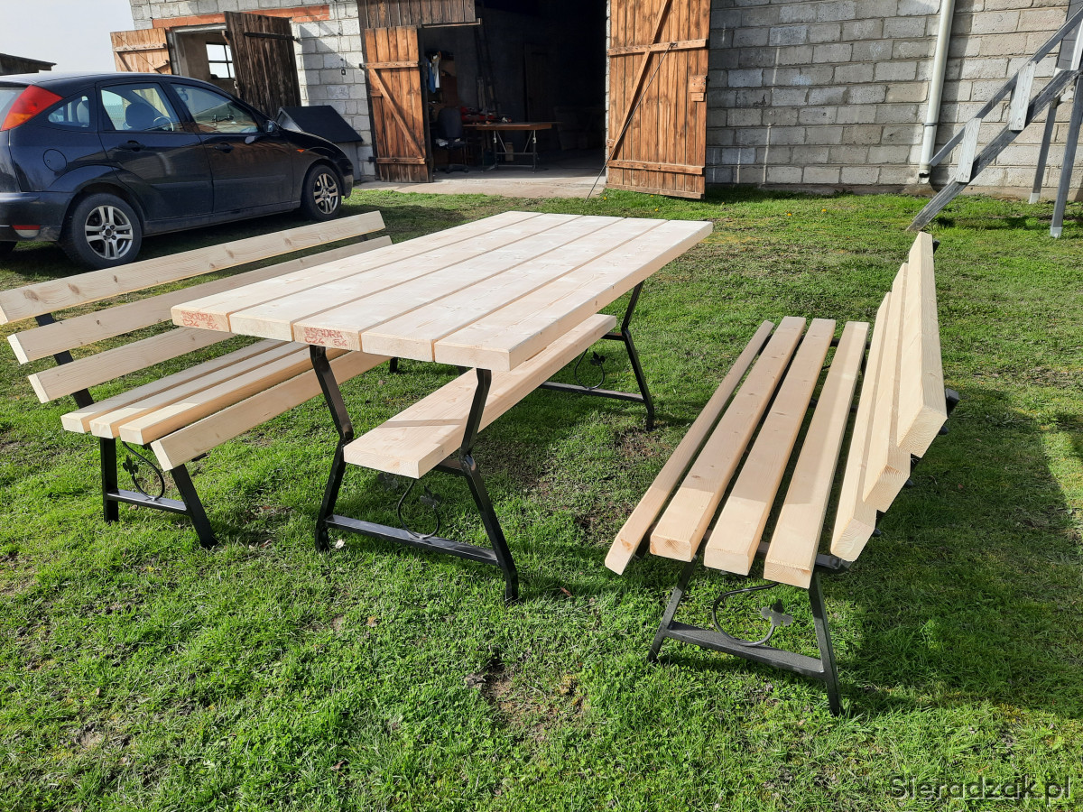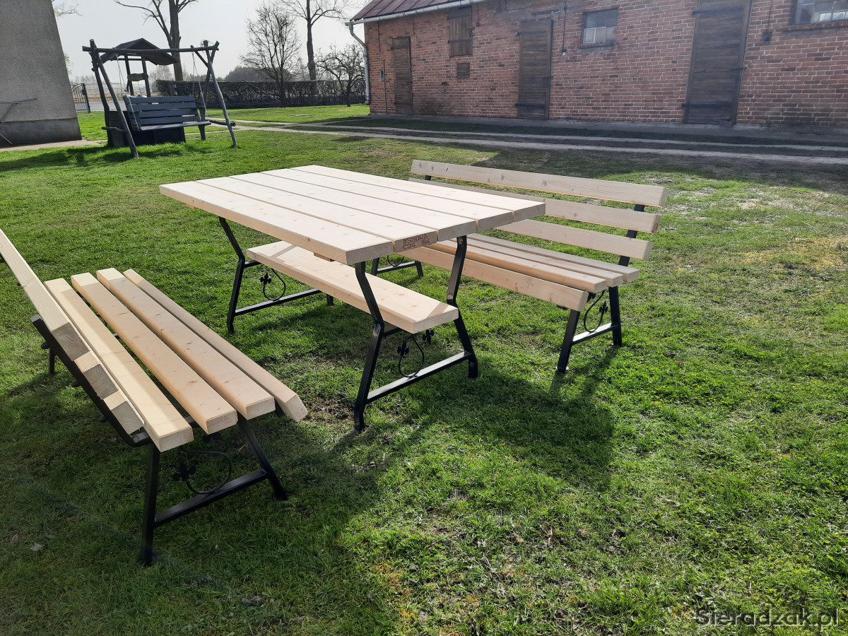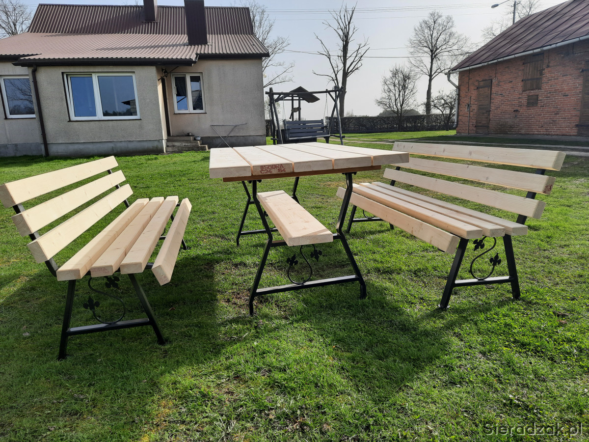 Sprzedam komplet mebli ogrodowych na nogach metalowych ozdobnych. W sklad zestawu wchodzi stół o wymiarach 180x88 cm oraz dwie ławki również 180 cm. Całość bardzo solidna i wytrzymała. Zestaw wykonany z desek o grubości 4,5 cm. Zainteresowanych zapraszam do kontaktu.
