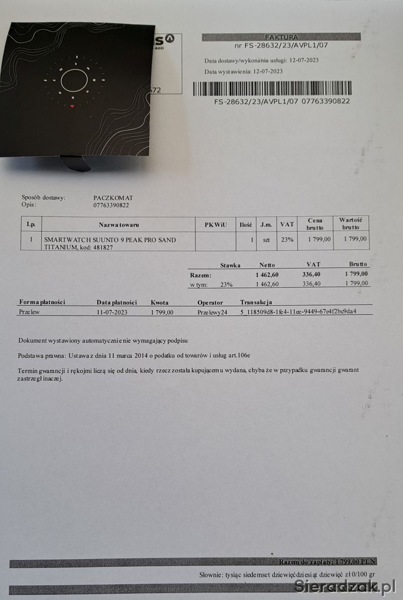Ponieważ żona ma problemy z sercem, zmuszony byłem zakupić kardiowatch i Peak Pro jest do sprzedania.