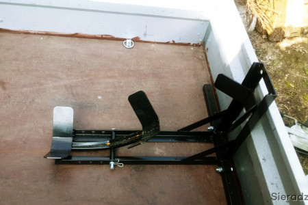 Stojak montuje się do podłogi przyczepy, busa, platformy.