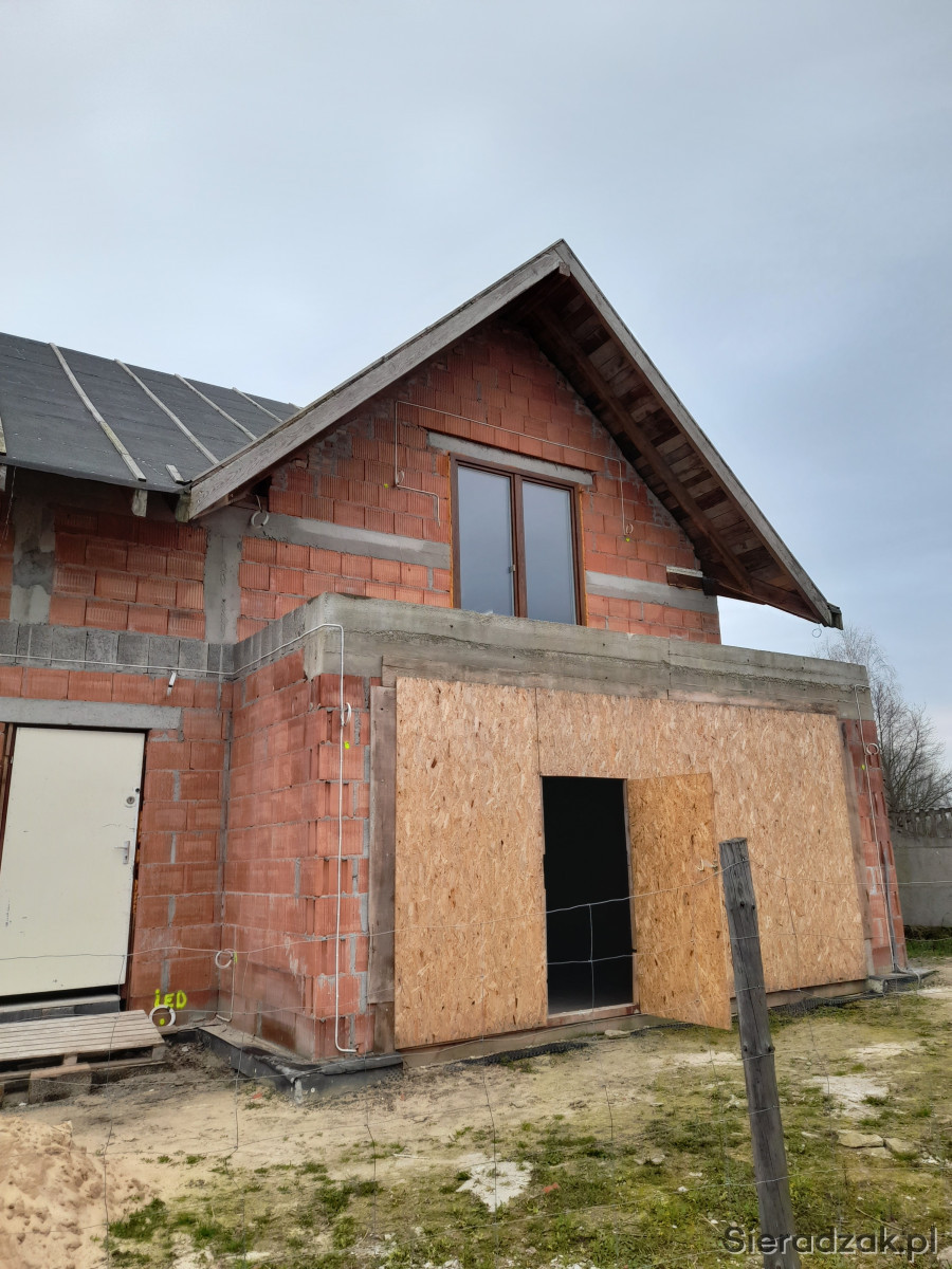 Sprzedam dom piętrowy do wykończenia wszystkie media okolice Sieradza.Dół:Salon z aneksem kuchennym sypialnia garderoba łazienka dla gości schowek przedpokuj kotłownia garaż dwu stanowiskowy taras. Góra:sypialnia z tarasem dwa pokoje gościnne duża łazienka pralnia hol.Dodatkowo garaż wolnostojący na jedno auto w pełni wykończony.Położone tynki,instalacja elektryczna pod rolety zewnętrzne kamery,hydrauliczna Więcej informacji priv. Nie odpisuje na e-mail i SMS,tylko tel.Dla zainteresowanej osoby kupnem cena podlega negocjacji.