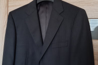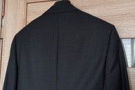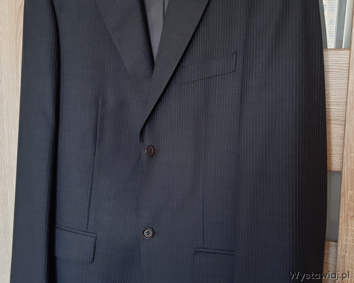 Sprzedam: efektowna męska MARYNARKA kolor: ciemnoszary, użyta okazjonalnie tylko raz, stan idealny – jak nowy! Materiał: 95% wełna i 5% poliester; na 182 cm wzrostu (182 / 96 / 82), długość rękawa ok. 69 cm, zapinana na 2 guziki, w klapie butonierka; z przodu posiada jeszcze fabrycznie zszyte: kieszonkę na poszetkę oraz dwie kieszenie zewnętrzne z patkami; wewnątrz 4 kieszenie, z tyłu marynarki dwa rozcięcia (również zafastrygowane fabrycznie), całość na doskonałej jakości podszewce. Zakupiona w sklepie firmowym, wykonana z niezwykłą starannością, bardzo elegancka, pasuje do różnych stylizacji. Cena 40 zł.