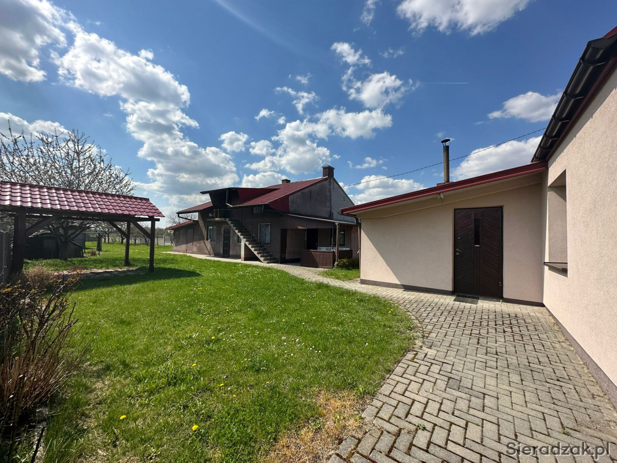 W budynku obok znajduję się pomieszczenie gospodarcze które pełni funkcję tzw. kuchni letniej z pokojem i wyjściem na zadaszony, ogrodzony ganek oraz dwa osobne pokoje z niezależnym wejście od strony podwórka. Dodatkowo do zagospodarowania wysokie poddasze.