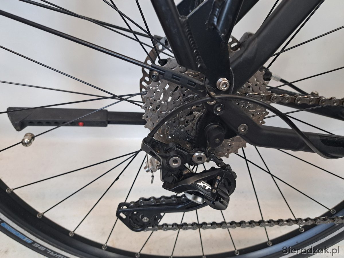 rama aluminium 6061 22" 56cm,napęd 2x10,przerzutki shimano deore xt,manetki shimano deore,hamulce tarczowe hydrauliczne magura mt4 180/160,amortyzator sr suntour ncx z blokadą skoku,mostek regulowany.wyposażenie dodatkowe:bagażnik,błotniki,podpórka.stan techniczny bardzo dobry,wizualnie niewielkie ślady użytkowania.