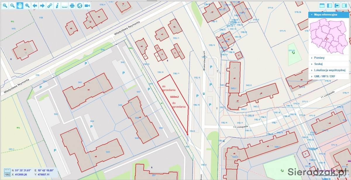 Sprzedam działkę zlokalizowaną w obszarze ulic Reymonta/ 11 Listopada/ Braterstwa Broni.