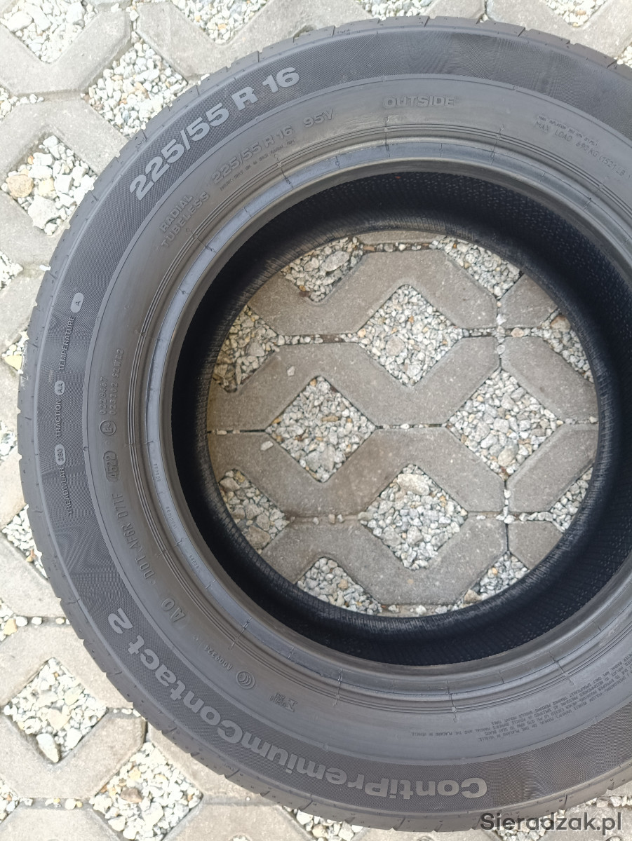 2x opony letnie Continental 225/55 R16 95Y, DOT 4522, bieżnik 5,5mm. Opony w bardzo dobrym stanie po niewielkim przebiegu, sprawdzone ciśnieniowo.