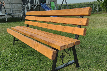 Sprzedam ławkę ogrodową na nogach metalowych ozdobnych. Ławka ma deski o grubości 4,5 cm i długości 180 cm. Pomalowane są impregnatem w kolorze dąb. Bardzo solidna I stabilna. Zainteresowanych zapraszam do kontaktu.