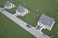 Domy posadowione zostaną na trzech odrębnych działkach o powierzchni 823 m2, 822 m2 oraz 824 m2. Działki mają bezpośredni dostęp do drogi gminnej oraz urządzonej drogi wewnętrznej.