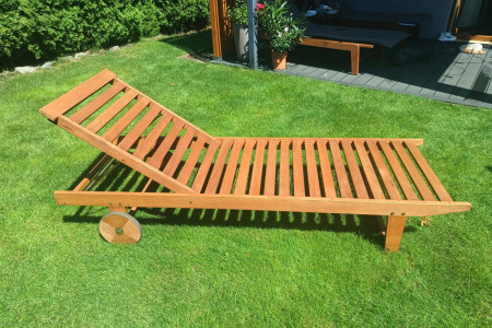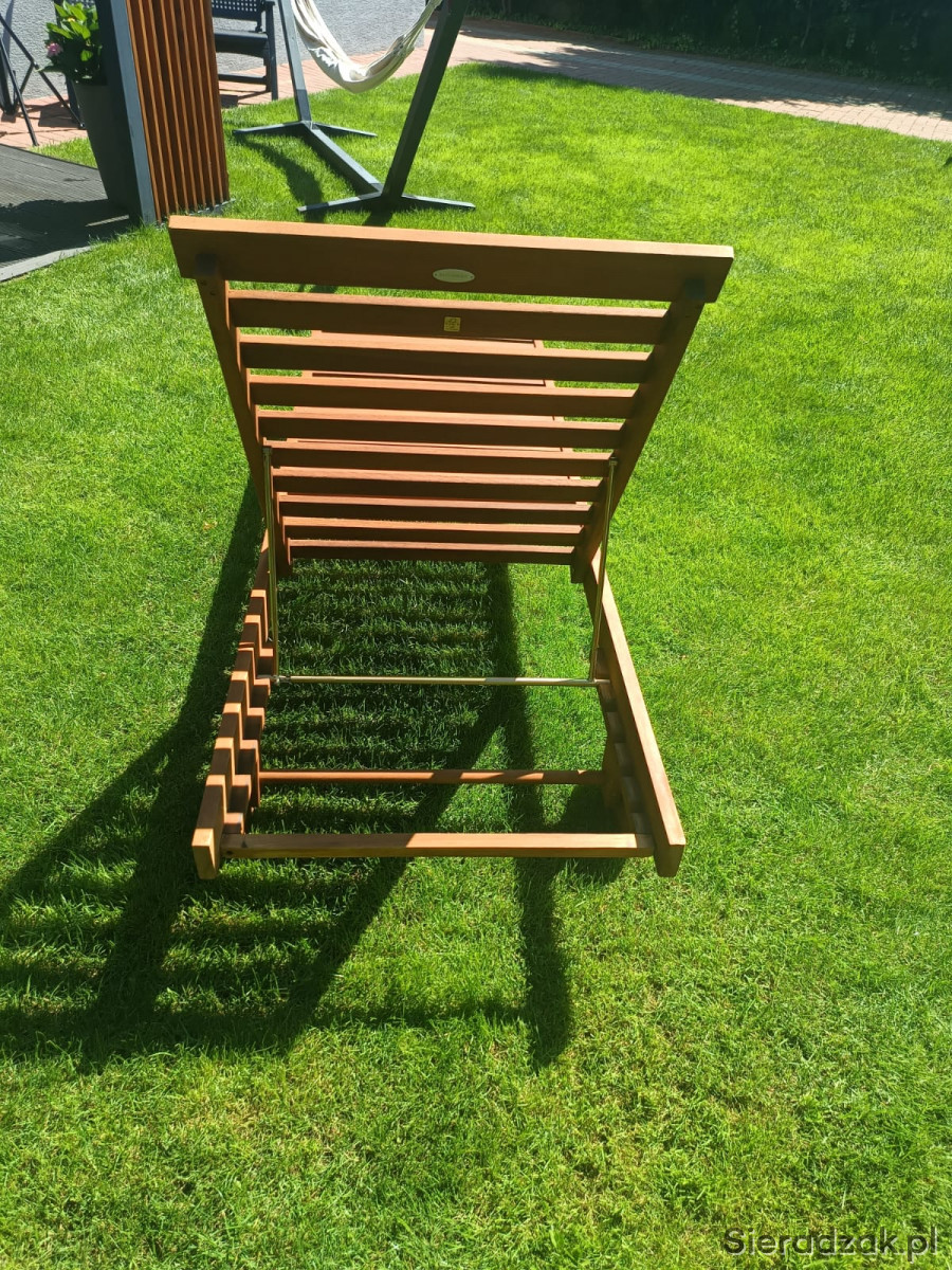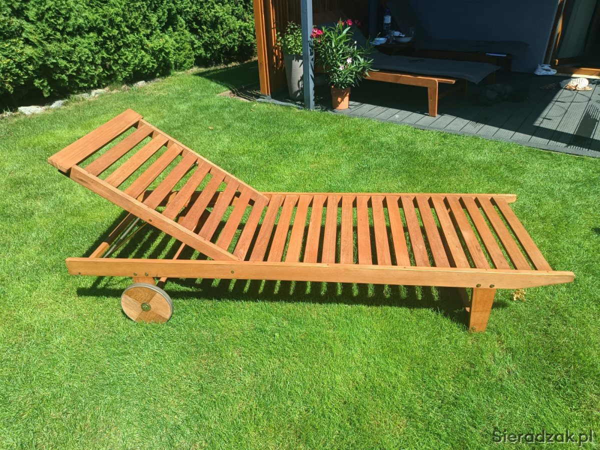 Sprzedam roczny leżak drewniany (leżak z twardego drewna jest trwały, odporny na warunki atmosferyczne i wymaga niewielkiej konserwacji) zakupiony w sklepie Jysk. Stan oceniam na bardzo dobry. Nie wymaga malowania. Przechowywany w pomieszczeniu. Wymiary długość 205 cm, 65 cm szerokość . Leżak posiada 5 stopni regulacji oparcia plus położenie na płasko. Dzięki kółkom łatwo można go przemieścić. Odbiór najlepiej osobisty.
