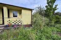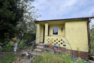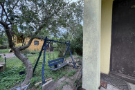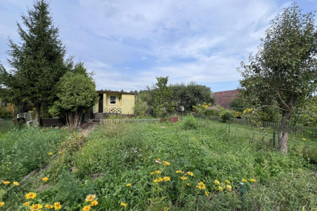 Działka ma powierzchnię ok. 220 m2 (11,5m x 19,5m). Znajduje się tam murowany domek z wydzieloną częścią gospodarczą (bok budynku obok huśtawki). Posiada on dostęp do prądu. Na działce znajduje się pompa wody.