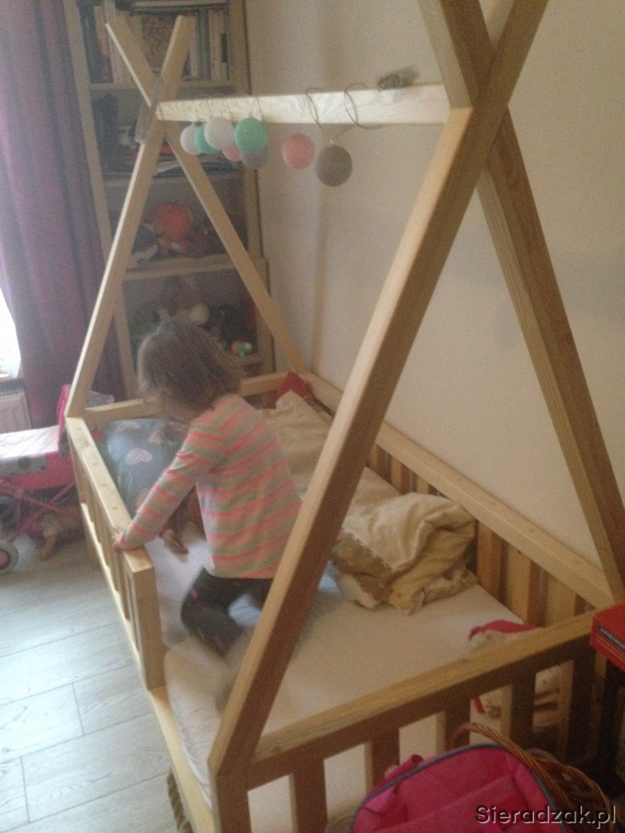 Łóżeczko dziecięce TIPI BRD. Wszystkie elementy łóżeczka i szuflady wykonane są z drewna. Malowane ekologicznym lakierem bezbarwnym. Wymiary 160/80 cm i wysokość 165 cm. Dwie szuflady. Wys. barierek 30 cm. Wejście do łóżeczka 50 cm.. Łóżeczko niezniszczone w bardzo dobrym stanie. Tel. 601 91 84 39