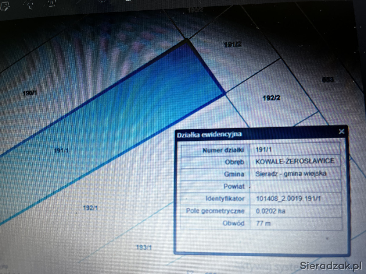Do tej sprzedawanej działki przynależy (nieodpłatnie) łąka usytuowana na działce Nr 191/1 o powierzchni 0.0202 ha.