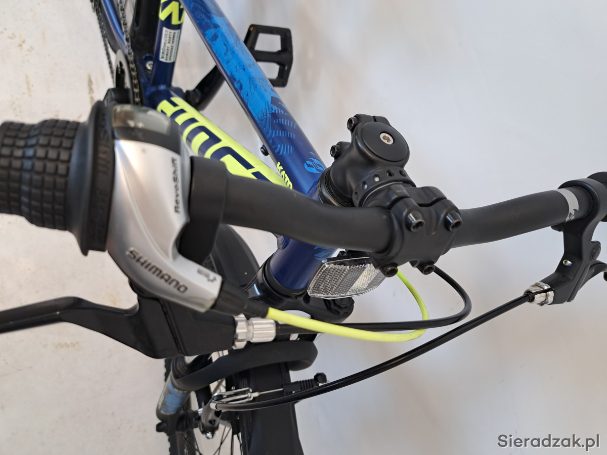 rama aluminium 11" 28cm,przerzutka shimano tourney,napęd 8-rzędowy,manetka revoshift shimano,amortyzator rst ghost,hamulce v-brake tektro.stan bardzo dobry.