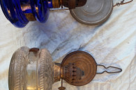 Sprzedam nietypową lampę naftową mocowaną na drzewcu, niestety brak klosza.i jeszcze dwie lampy w stanie widocznym na zdjęciach.