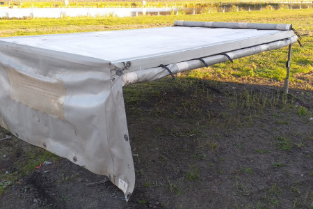 Sprzedam w dobrym stanie stelaż z plandeką szer.2.0m, dł.3.3m, wys1.0m. zdjęty z volkswagena T5.