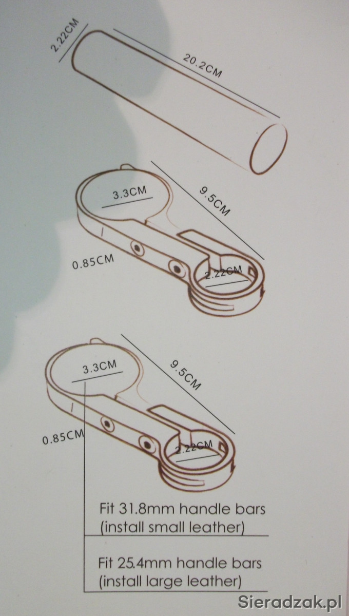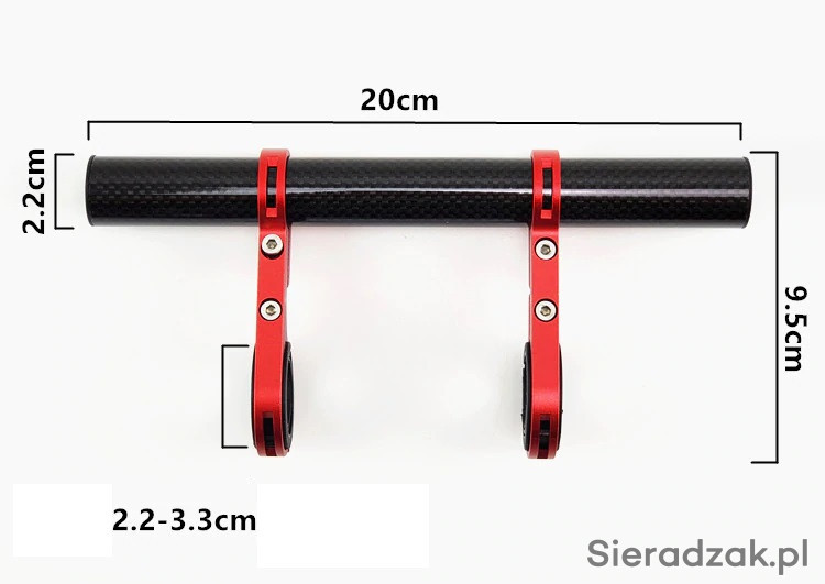 Uchwyt/Poprzeczka pasuje do większości motocykli, rowerów i hulajnóg, a nawet niektórych skuterów. Posiada obejmy na kierownicę z redukcjami 32mm-25mm-22mm-20mm.