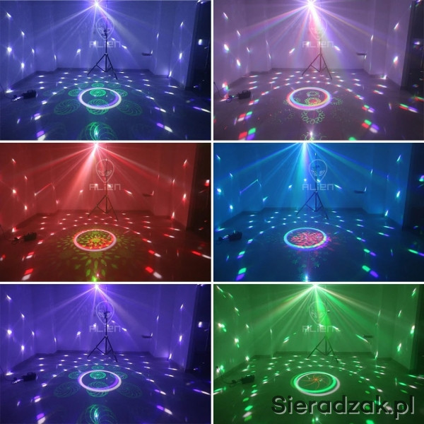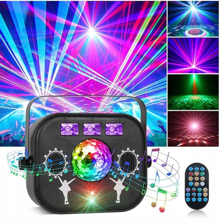 Efekty Kula disco + Laser + Stroboskop + UV. Dzięki temu posiada duże możliwości pracy w każdych warunkach. Każdy użytkownik będzie z pewnością zadowolony mając możliwość użycia wszystkich efektów na każdej imprezie.