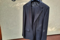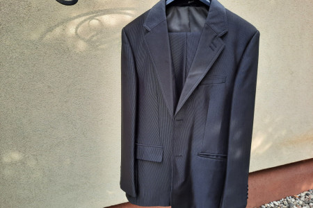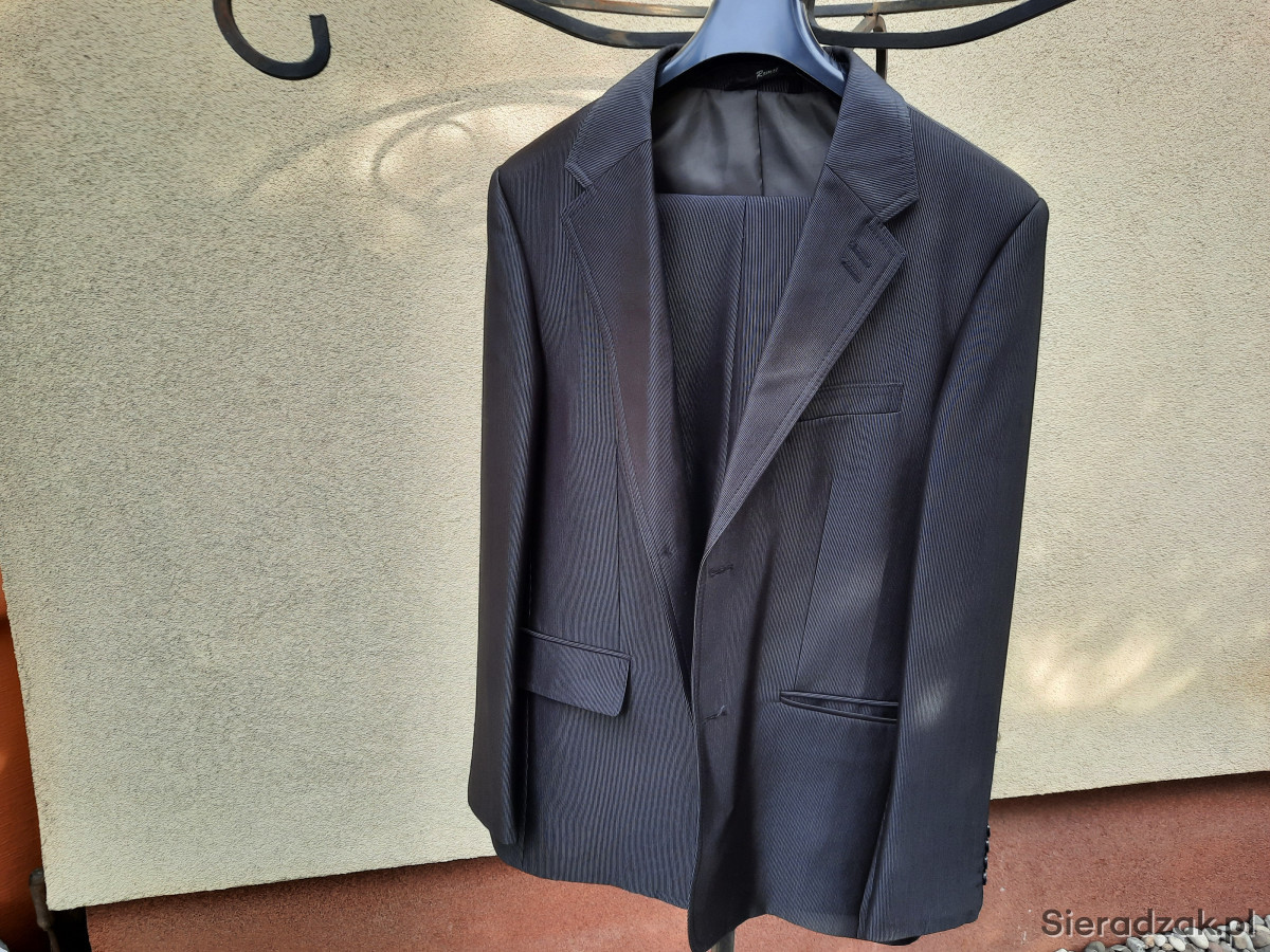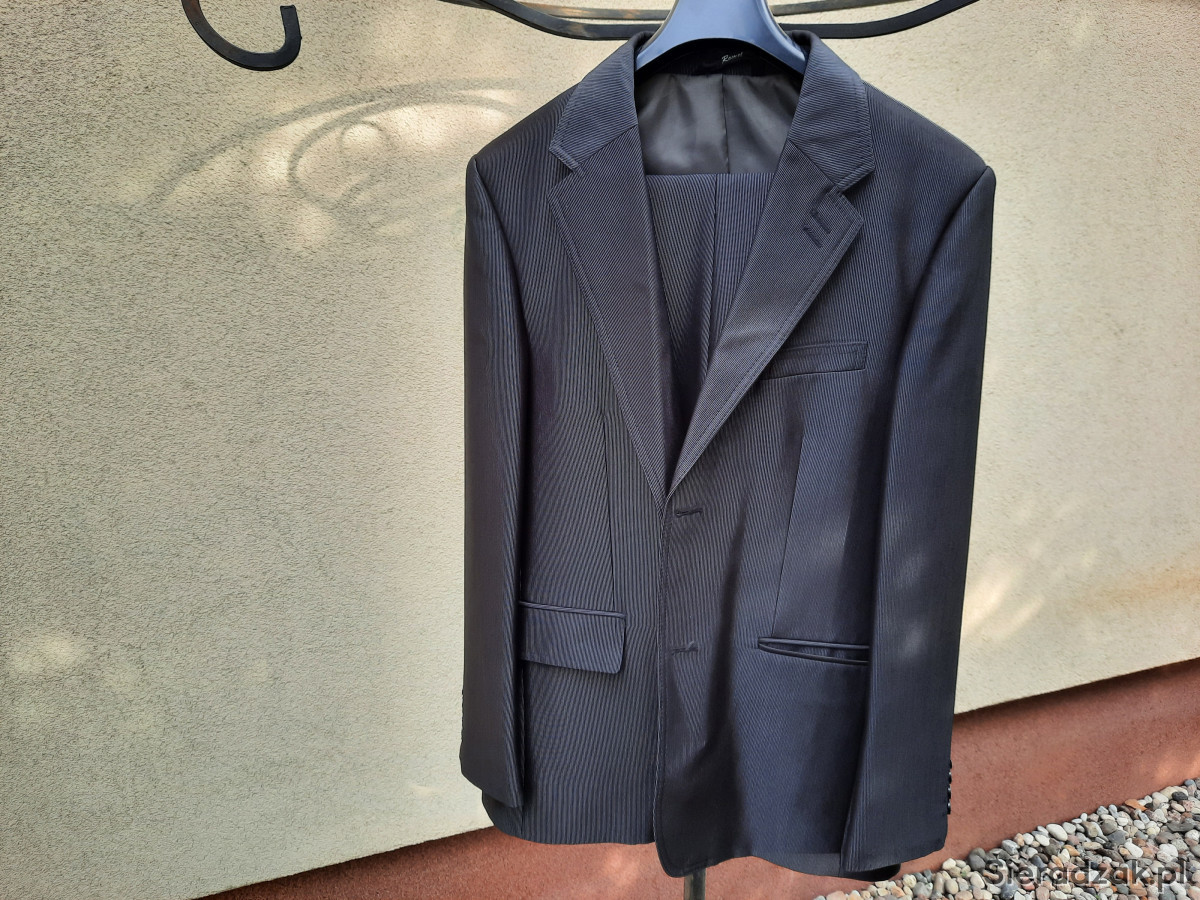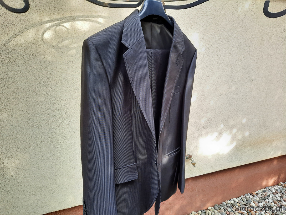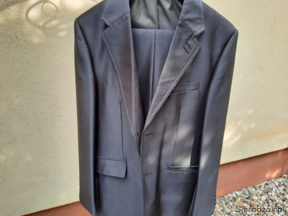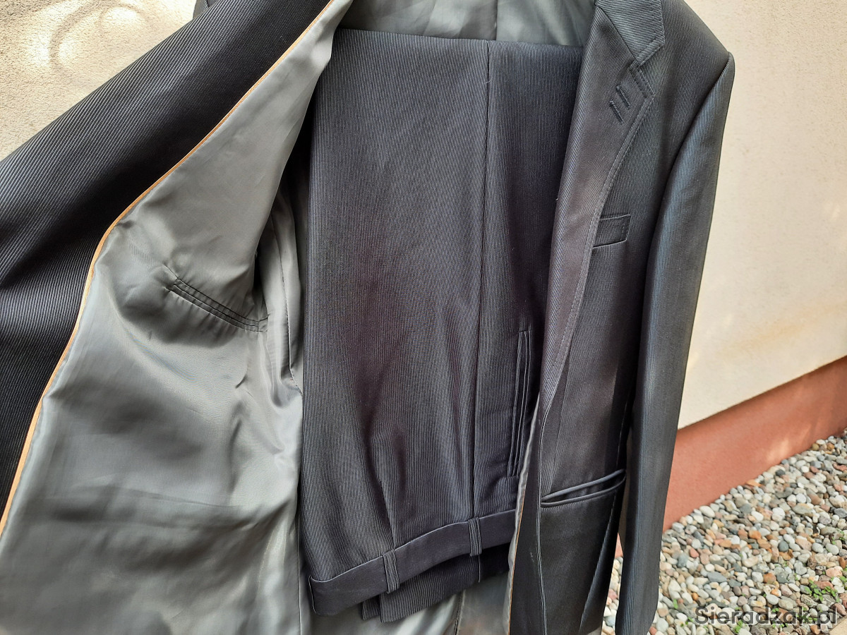Stalowy garnitur prążkowany, idealny np. na studniówkę.