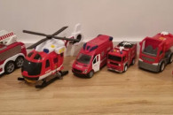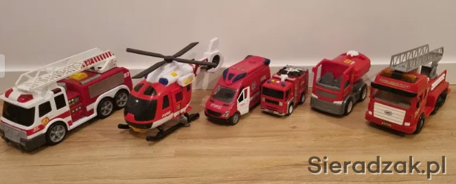 Pojazdy strazackie w dobrym stanie. 5x woz strazacki 1x helikopter Pojazdy z sygnalami dzwiekowymi. Helikopter z wyciagiem.