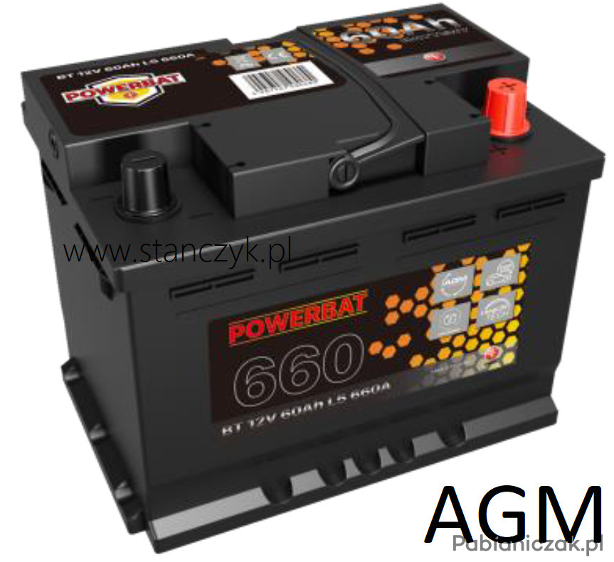 AKUMULATOR POWERBAT 12 V 60Ah 660A START-STOP AGM