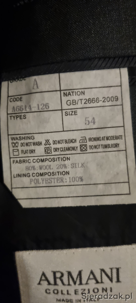 Garnitur męski kolekcja Armani mało używany klasyczny na wzrost ok.180cm,spodnie pas 92-94cm