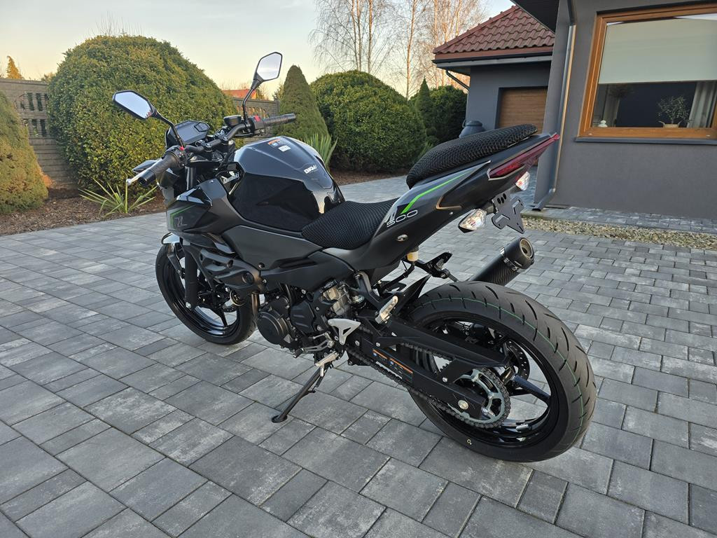 Do sprzedania Kawasaki Z500. Data pierwszej rejestracji 17.09.2024r. Motocykl sprowadzony z Niemiec bezpośrednio od pierwszego właściciela. Kawasaki jest jak nowe. Przebieg zaledwie 262km. Motocykl na prawo jazdy kategorii A2 (33kW w dokumentach). Z dodatków posiada sportowy wydech Leovince, krótki stelaż tablicy rejestracyjnej i pokrowce na siedzenia. Do motocykla jest pełna dokumentacja (książka serwisowa, instrukcje, certyfikaty, 2 oryginalne kluczyki itp). Cena nowego w salonie około 30000zł. Kupujący zwolniony z opłaty skarbowej. Zapraszam na oględziny i jazdę próbną. Możliwość dowozu motocykla do klienta. Na więcej pytań chętnie odpowiem pod numerem telefonu 667-702-600.
