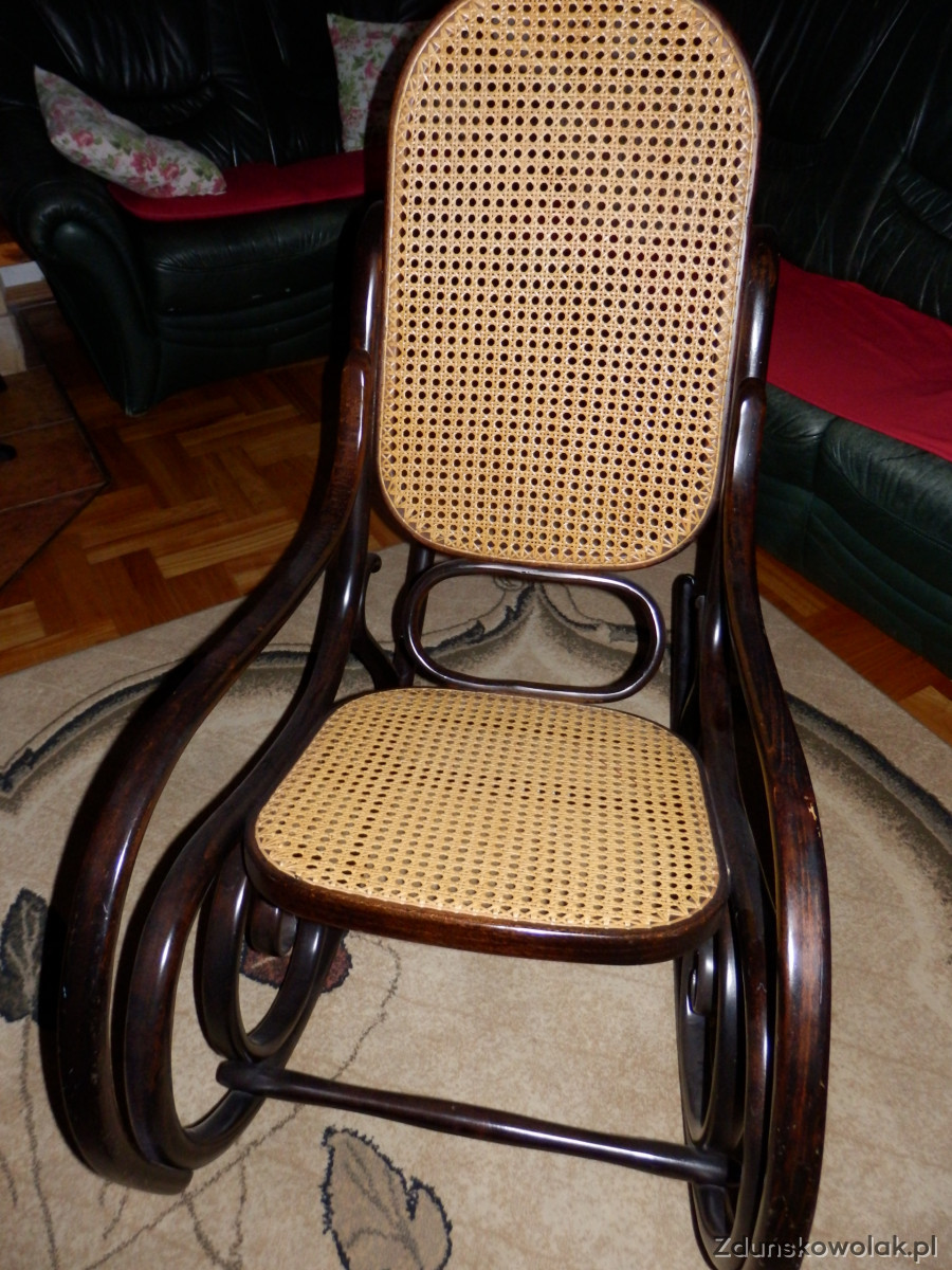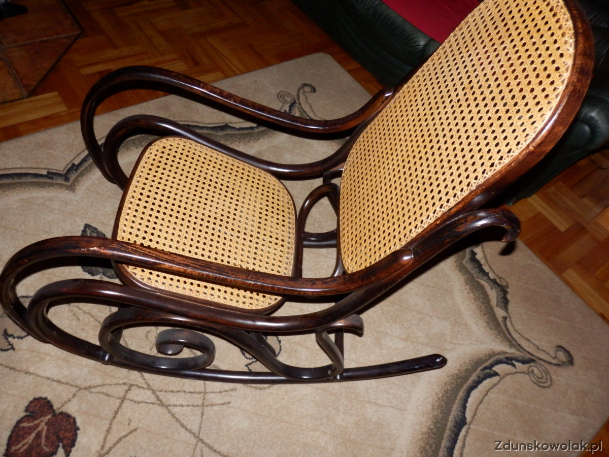 Sprzedam w bardzo dobrym stanie fotel bujany, gięty - drewno bukowe. Oparcie i siedzisko ratanowe. Wymiary: wysokość całkowita 105cm, szerokość oparć rąk 51cm, na dole 52-54 cm. Kolor drewna ciemny brąz. Ten wspaniały mebel może być prezentem dla Babci i Dziadka. Zrób im niespodziankę! Zapraszam do zakupu.