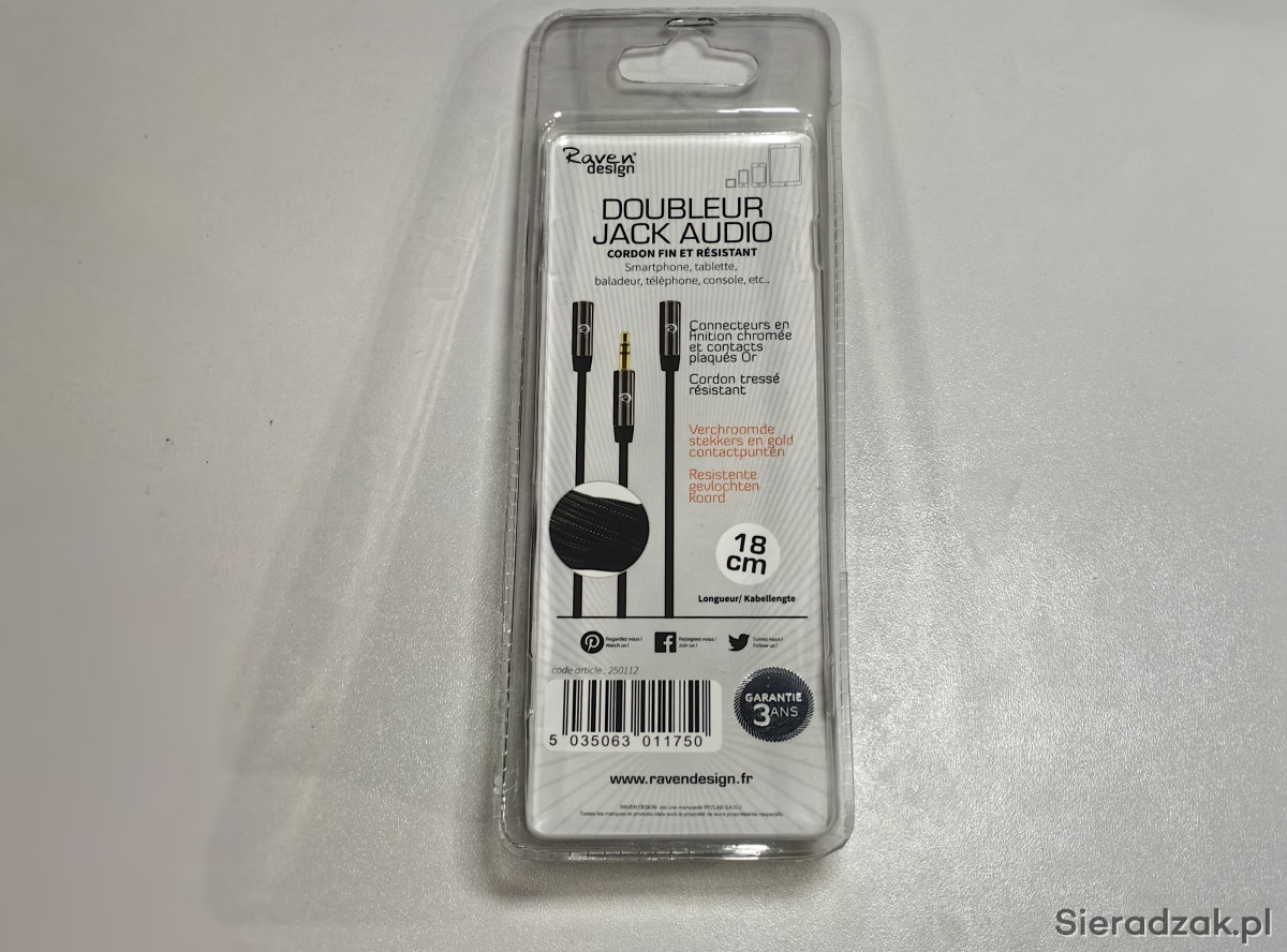 Witam, mam do sprzedania kabel Jack audio Raven design doubleut audio 18 cm nowy z likwidacji sklepu cena do negocjacji możliwa wysyłka lub odbiór osobisty proszę pisać pozdrawiam i zapraszam również na inne moje aukcje.