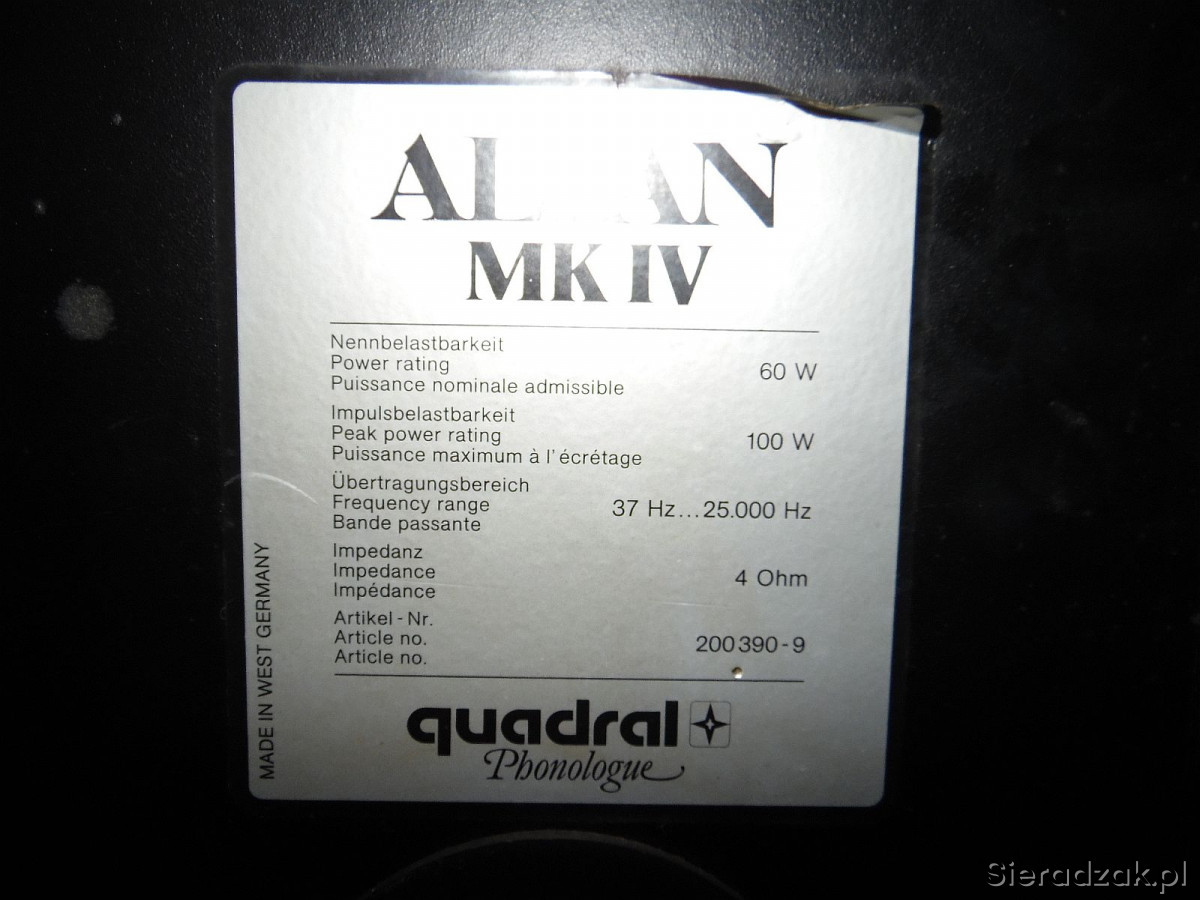 Kolumny monitory QUADRAL ALTAN MK IV 2x100Watt 4ohm Made in Germany