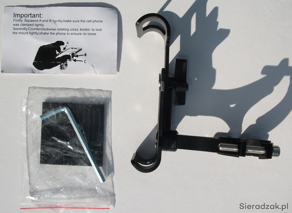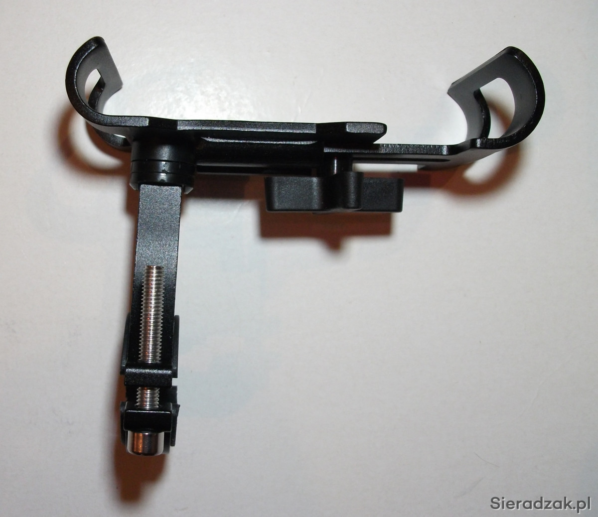 Blokowanie mechanizmu zaciskowego na telefonie odbywa się pokrętłem na "plecach" uchwytu.