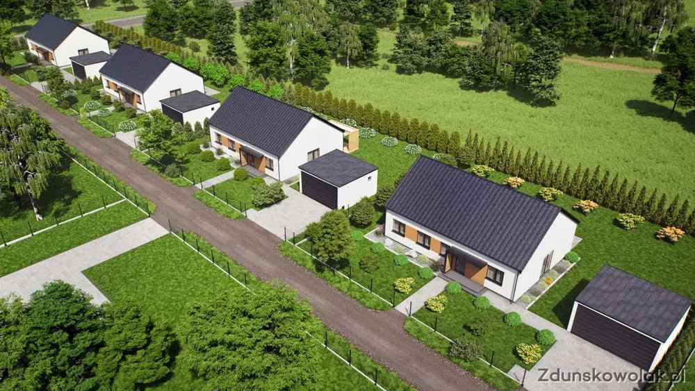 Domy znajdują się w dogodnej lokalizacji na spokojnym osiedlu w niedalekiej odległości od szkoły, przedszkola, placówki medycznej, sklepów, poczty itp. Bliskie połączenie z trasą S8 umożliwia szybki dojazd do pobliskich miast tj. Sieradz, Łask i Pabianice. W ciągu 30 minut można dojechać do Portu Łódź.