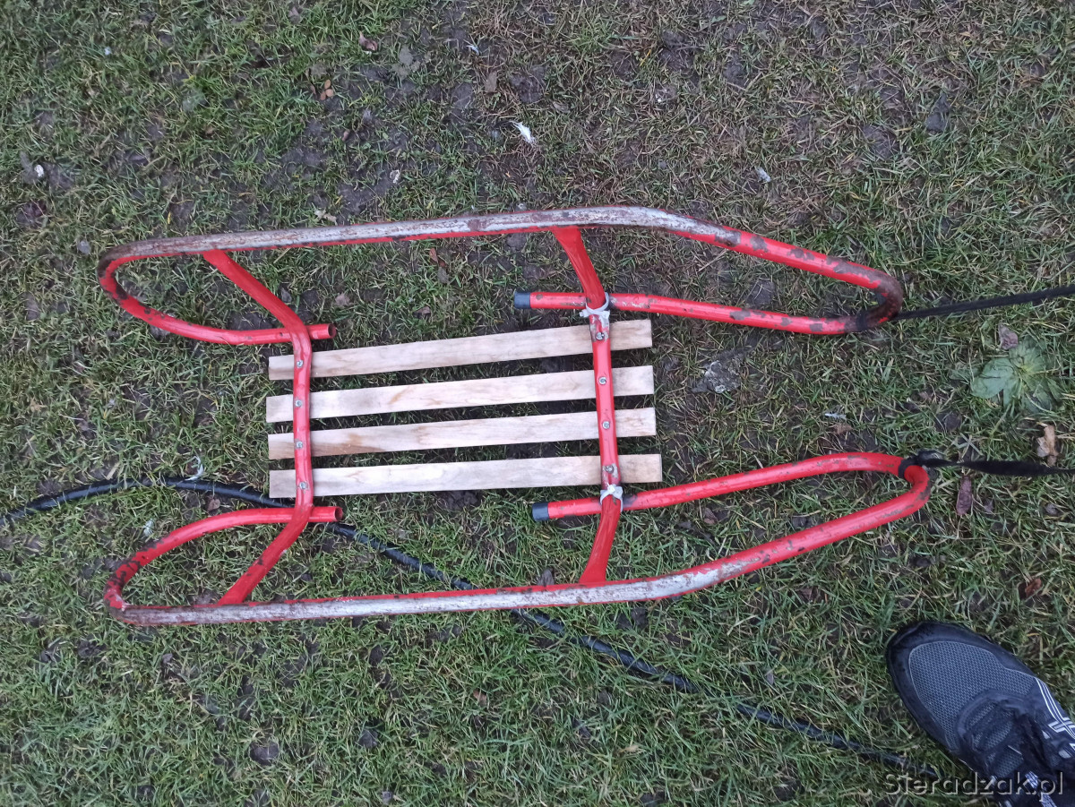 Sanki metalowe płozy a drewniane siedzisko