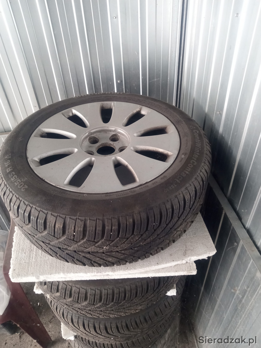 Sprzedam felgi aluminiowe 16cali z oponami zimowymi do Audi a4 b6/b7. Opony Continental zimowe 205/55 rozmiar 16cali z 2019roku.