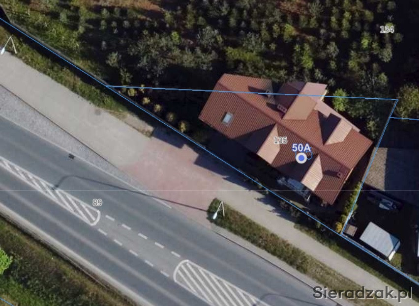 Działka w kształcie trapezu. Nieruchomość położona przy drodze krajowej nr 12.