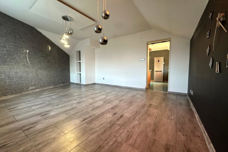 Na podłogach panele, ściany pokryte gładzią gipsową.