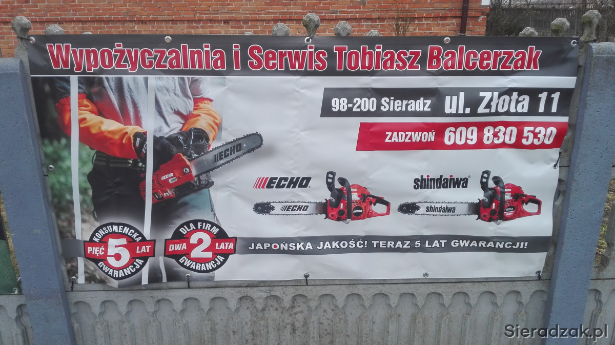 Firma oferuję sprzedaż, wynajem oraz serwis sprzetu ogrodniczego. Sieradz Wozniki ul. Złota 11. Tel 609830530.