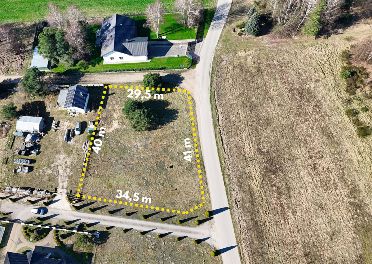 Wymiary działki ok. 40,5m x 33,5m.
