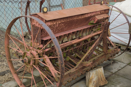 Siewnik konny zaadaptowany do ciągnika/traktora w środku zdrowy, z zewnątrz raczej do odmalowania.