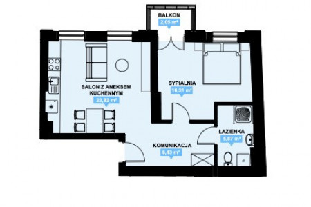 Dwa pokoje, przedpokoj, aneks kuchenny. łazienka
