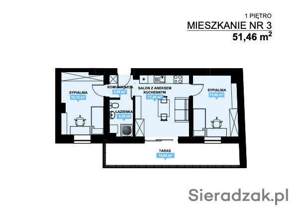 Na sprzedaż nowe mieszkanie 51,46 m2 przy ulicy Warckiej/Żwirki i Wigury 12.