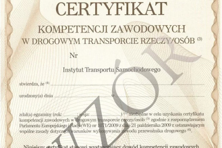 Użyczę Certyfikat Kompetencji Zawodowych w Drogowym Transporcie Rzeczy