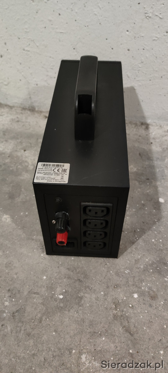 Zasilacz w pełni sprawny po małych modyfikacjach.Poza wbudowanym akumulatorem posiada zamontowane konektory do podłączenia dodatkowego zewnętrznego akumulatora .Posiada zimny start czyli można go uruchomić bez podłączenia do sieci dzieki czemu może pracować jako zewnętrzna stacja zasilania. Moc szczytowa to 480 wat. Wbudowany akumulator 9ah.