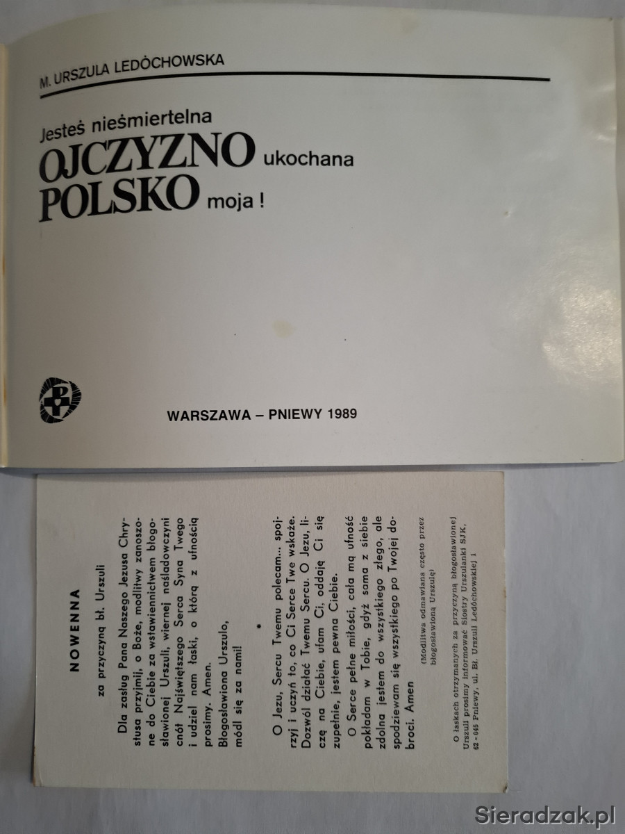 Wybór tekstów bł. Urszuli - wyrażającej Jej uwielbienie do rodzinnego kraju. Zdjęcia czarno-białe i kolorowe. Stron 88. + zdjecie pocztówkowe autorki.
