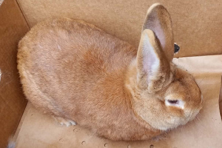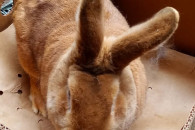 Sprzedam samca królika domowego (mieszańca) typu mięsnego o umaszczeniu jasnobrązowym z jaśniejszym podbródkiem