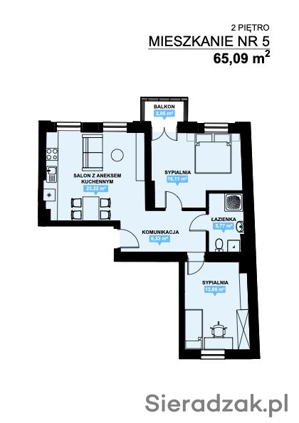 Na sprzedaż nowe mieszkanie 65,09 m2 przy ulicy Warckiej/Żwirki i Wigury 12.